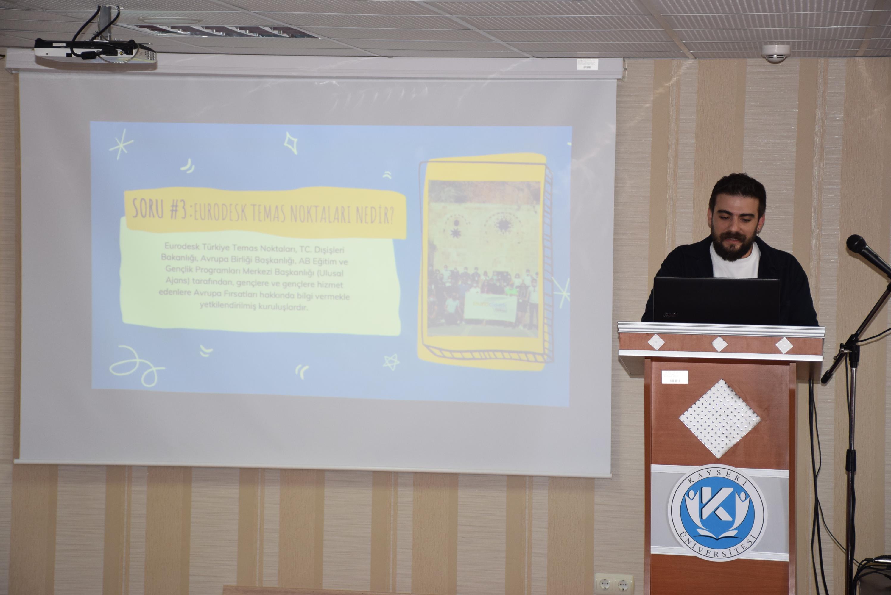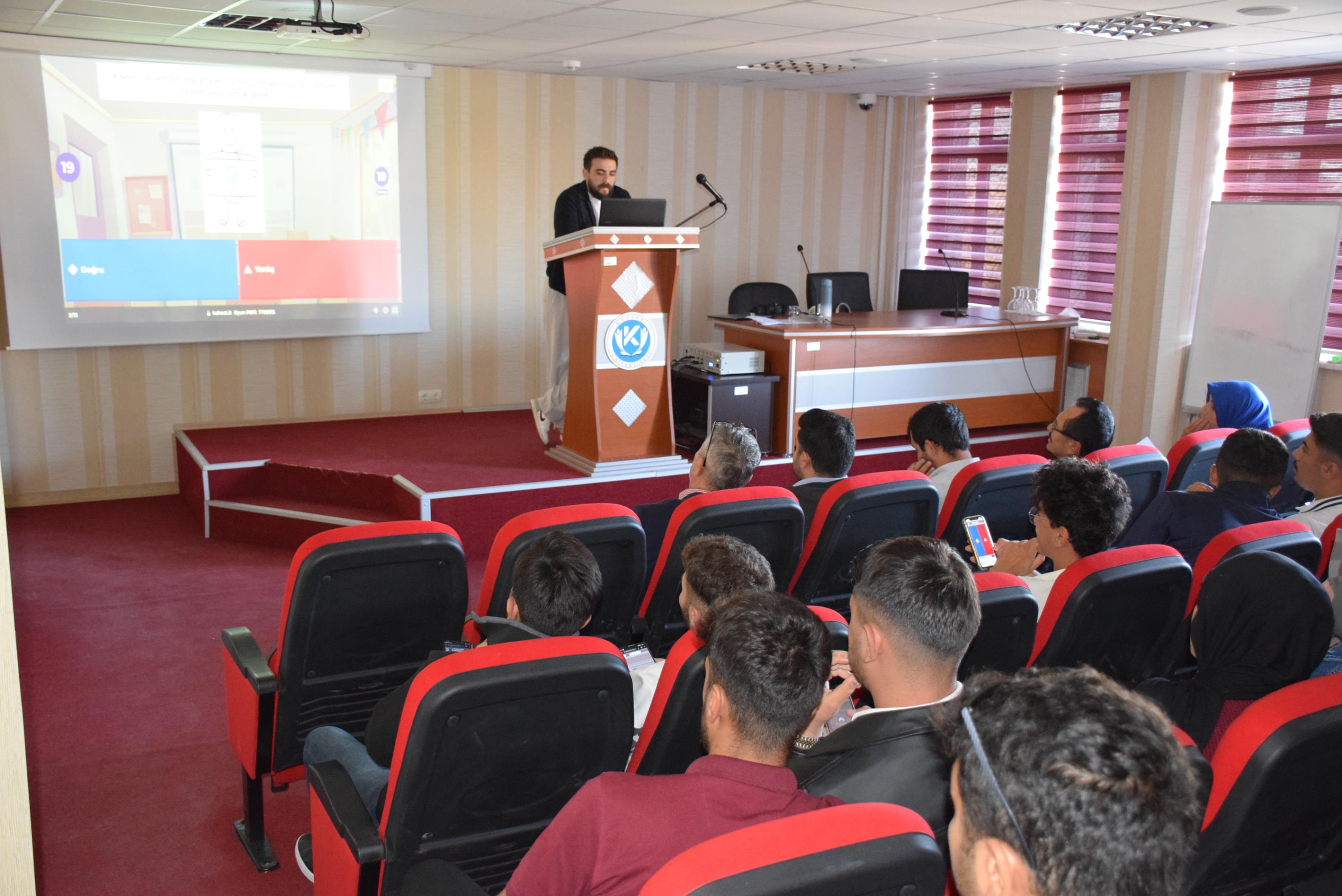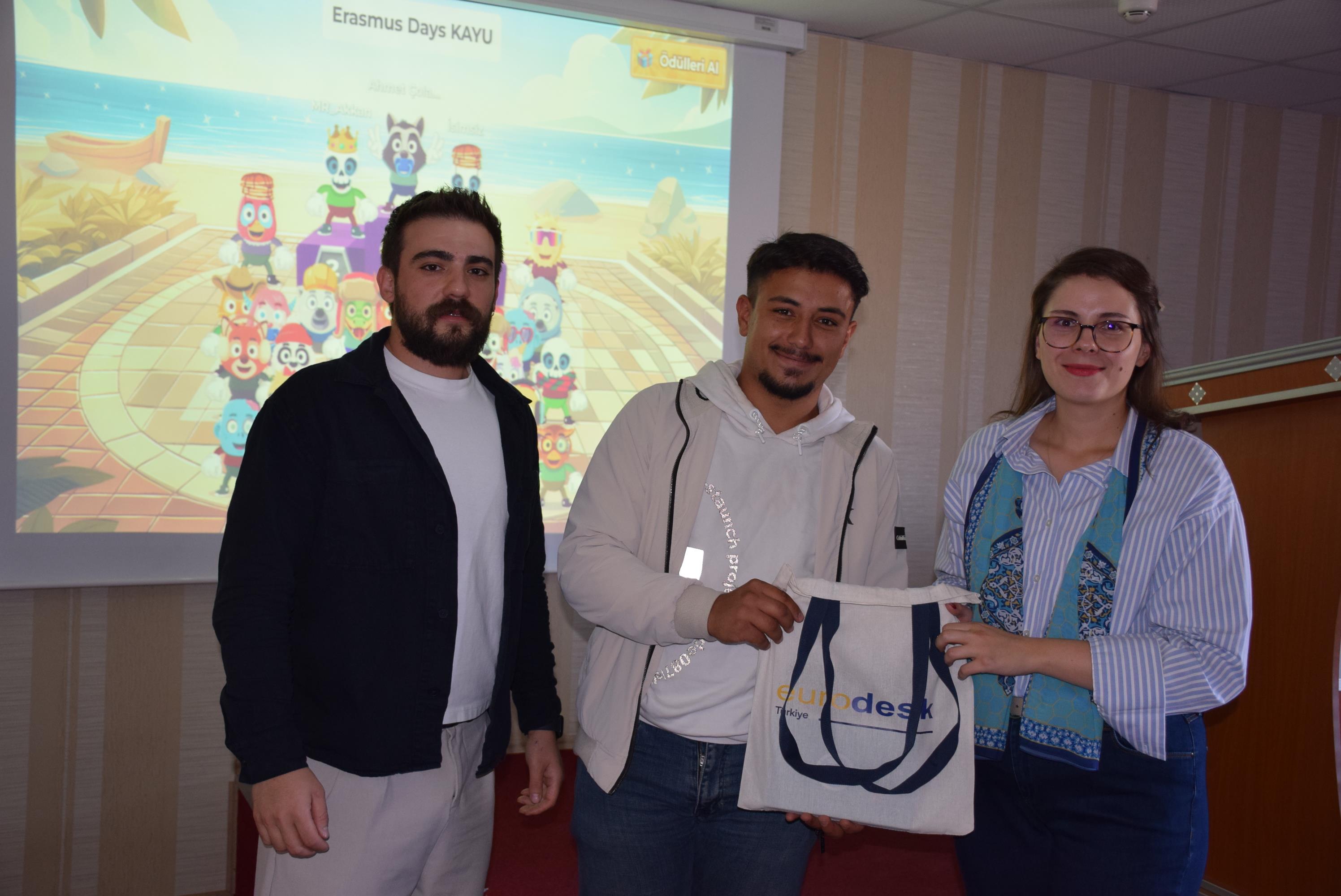 Yüksekokulumuz tarafından organize edilen etkinlikte, Üniversitemiz Dış İlişkiler Ofisi Başkanlığı personellerinden Öğr. Gör. Gözde Çulfacı ve Öğr. Gör. Mehmet Köylüoğlu sunumlarını gerçekleştirdi. Toplantıda öğrencilere, uluslararası deneyim kapılarını aralayan Erasmus+ programına başvuru şartları, nasıl başvuru yapılacağı ve sürecin işleyişi hakkında kapsamlı bilgiler aktarıldı. Ayrıca, gençlere yönelik Avrupa fırsatları hakkında bilgi sunan Eurodesk ağına dair kısa bir bilgilendirme de yapıldı. Sunumların ardından, anlatılan konuların pekiştirilmesi amacıyla eğlenceli bir aktiviteye geçildi. Web üzerinden düzenlenen Soru-Cevap oyunu ile öğrencilerin program hakkındaki bilgileri ölçüldü. Sorulara en çok ve en hızlı doğru cevabı veren başarılı öğrencimize hediye takdimi ile toplantı son buldu.