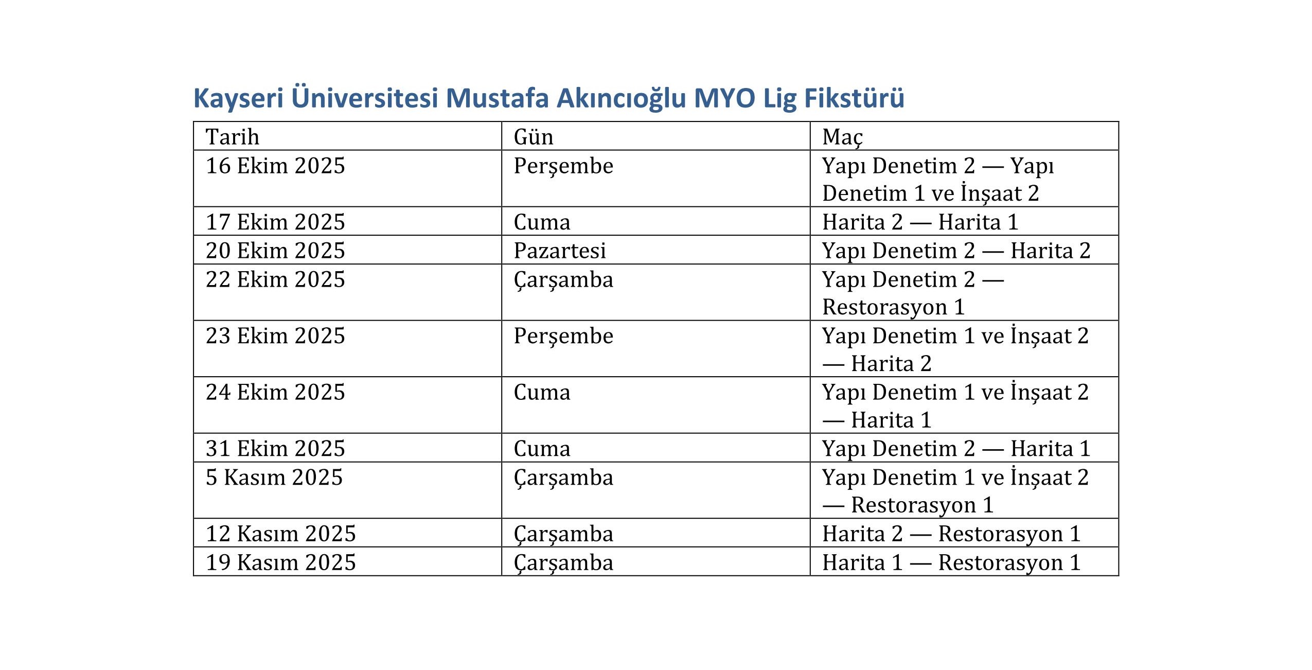 Yüksekokulumuz öğrencilerinden gelen talep doğrultusunda önemli dış paydaşlarımızdan Tomarza İlçe Gençlik Spor Müdürlüğü ile ortaklaşa sınıflar arası futbol turnuvası düzenlenmektedir. Turnuvaya katılacak Öğrenciler ile birlikte format ve kura çekimi Tomarza ilçe Gençlik Spor Müdürlüğün de gerçekleştirilmiştir. Turnuvanın düzenlenmesini sağlayan başta Tomarza İlçe ve Gençlik Spor Müdürü Ali Kılıç olmak üzere tüm Tomarza İlçe Gençlik ve Spor Müdürlüğü Personeline teşekkür ederiz.