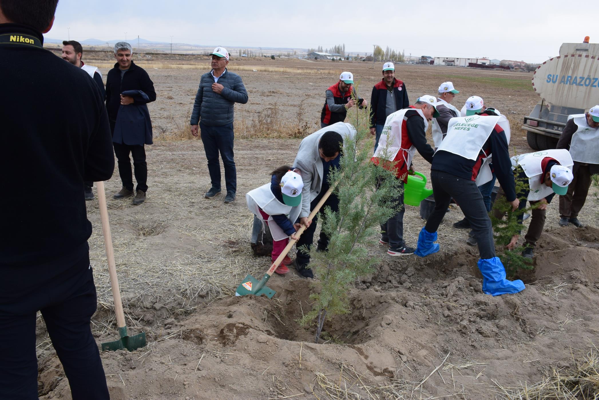 Tomarza Meslek Yüksekokulu, çevre bilincini artırmayı hedefleyen önemli bir etkinliğe ev sahipliği yaptı. Geçtiğimiz günlerde oluşturulan hatıra ormanına ek olarak, "Geleceğe Nefes" temasıyla yeni fidan dikimleri gerçekleştirildi. Fidan dikim törenine Tomarza Kaymakamı Selim Eser, İlçe Belediye Başkanı Osman Koç, Yüksekokul Müdürümüz Dr. Öğr. Üyesi İbrahim Bektaş başta olmak üzere, ilçe kurum amirleri ve çevreye duyarlı çok sayıda gönüllü katıldı. Kayseri Orman İşletme Müdürlüğü tarafından temin edilen fidanlar, katılımcıların elleriyle özenle toprakla buluşturuldu.