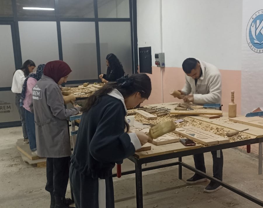 Kayseri Üniversitesi ve Talas Belediyesi işbirliği ile hayata geçirilen Talas Restorasyon Eğitim Merkezi’nde Mimari Restorasyon Programı öğrencileri Ahşap Restorasyonu ve Uygulaması dersi kapsamında Öğr. Gör. Kevser Laleli koordinatörlüğünde ahşap ve taş atölyesinde uygulamalı eğitimlere devam etmektedir.
