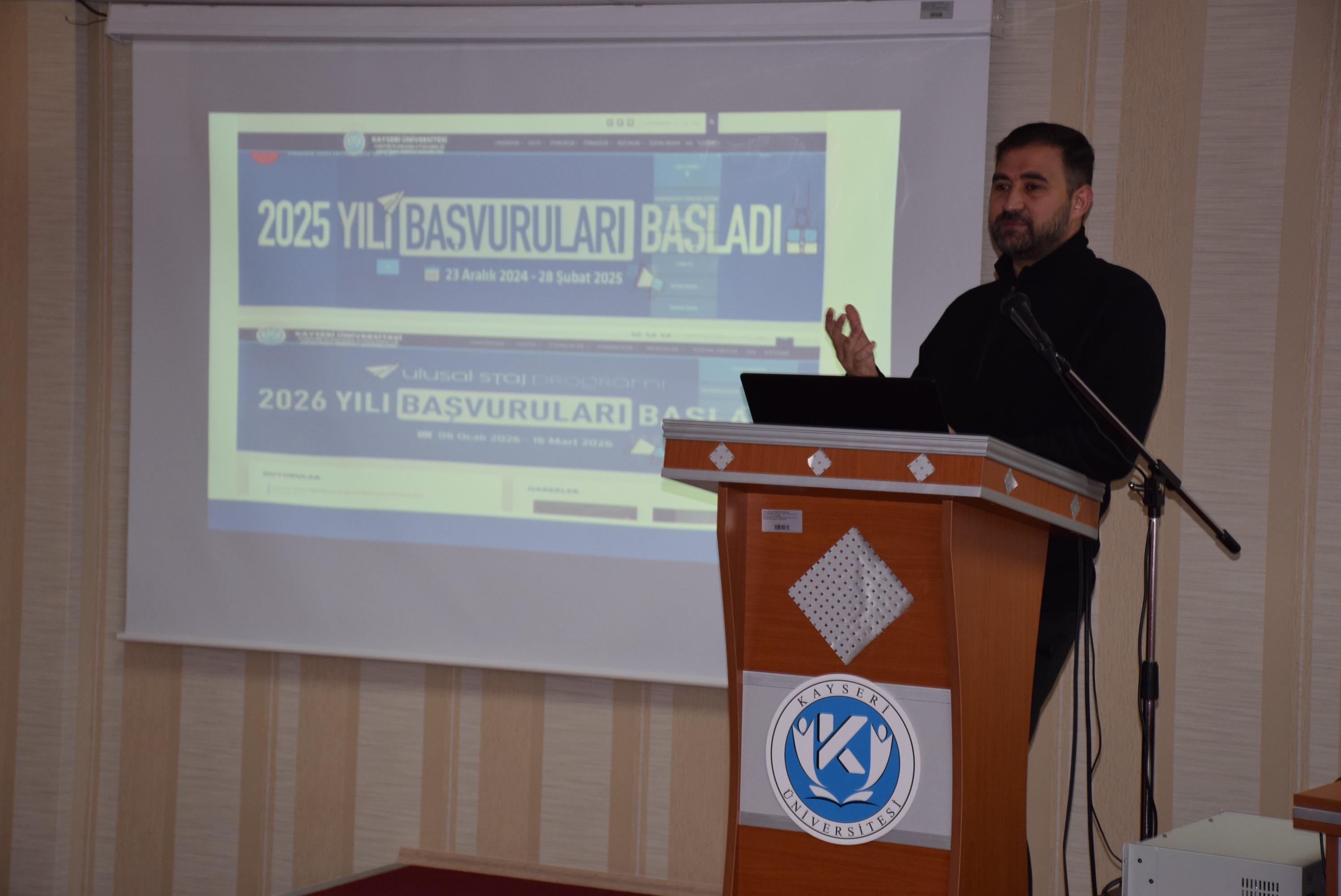 2026 yılı Ulusal Staj Programı başvurularının başlamasıyla birlikte, öğrencilerimizin başvuru süreçlerini hatasız tamamlamaları ve herhangi bir hak kaybı yaşamamaları amacıyla kapsamlı bir bilgilendirme eğitimi düzenlendi.